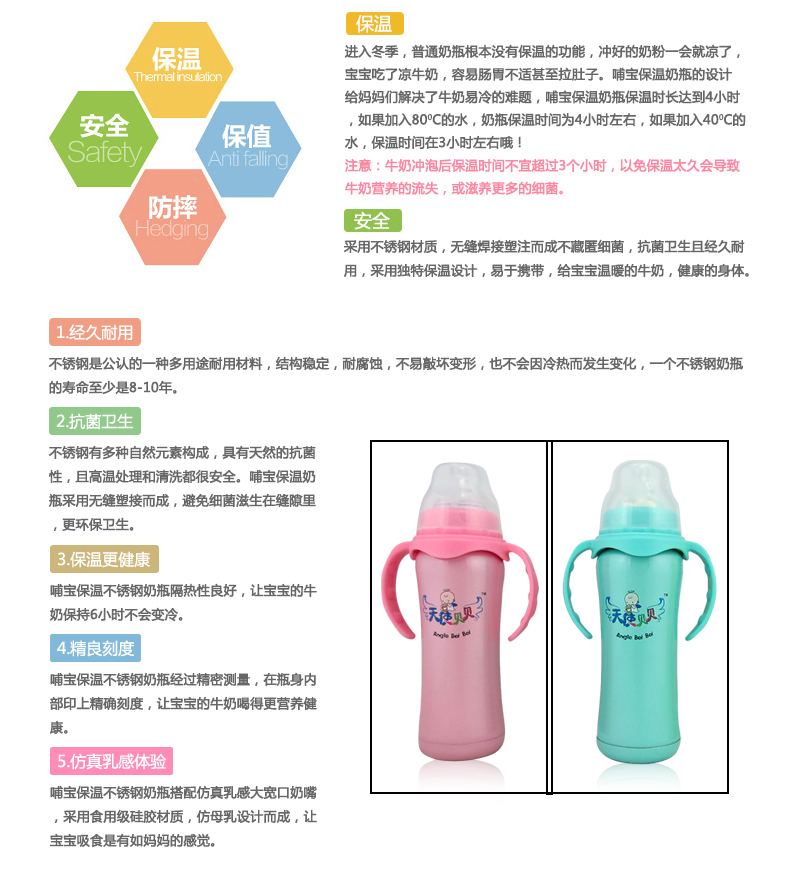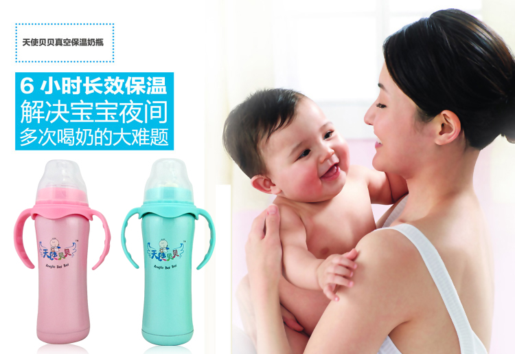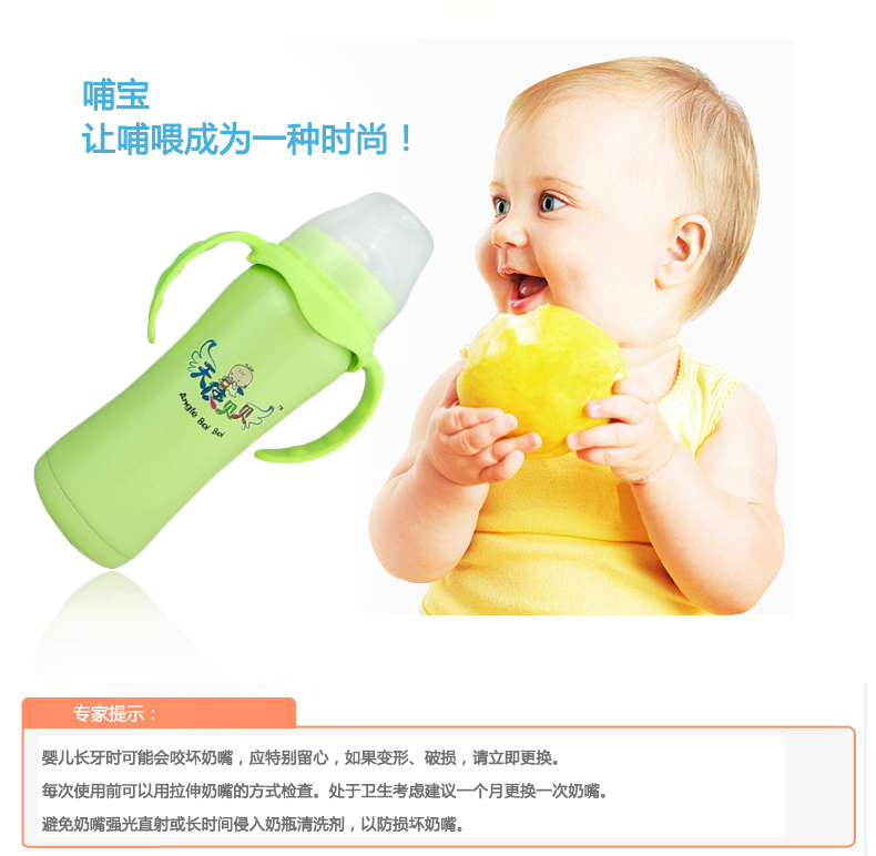 天貓購物商城 天使貝貝嬰兒寬口保溫奶瓶雙層不鏽鋼寶寶帶手柄矽膠奶嘴保溫奶瓶 - 39454548853 購物網 買東西推薦