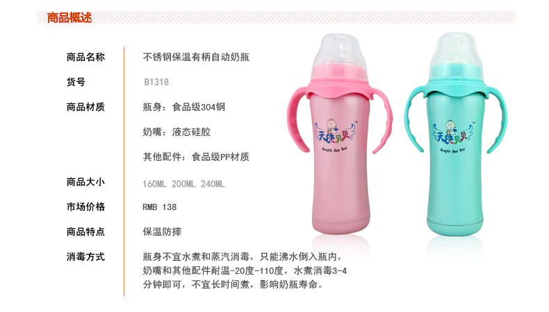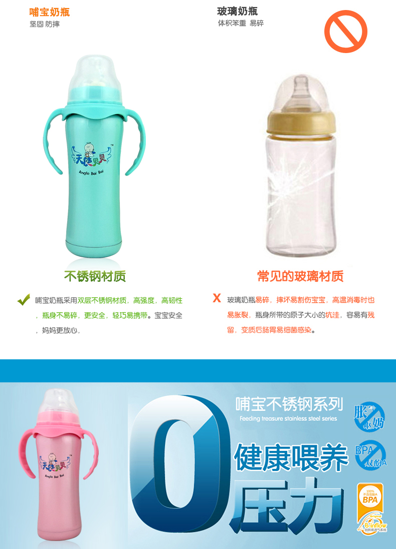 發現網購價格最便宜,天使貝貝嬰兒寬口保溫奶瓶雙層不鏽鋼寶寶帶手柄矽膠奶嘴保溫奶瓶 - 39454548853還曾在 天貓購物商城 類造成搶購熱潮,
