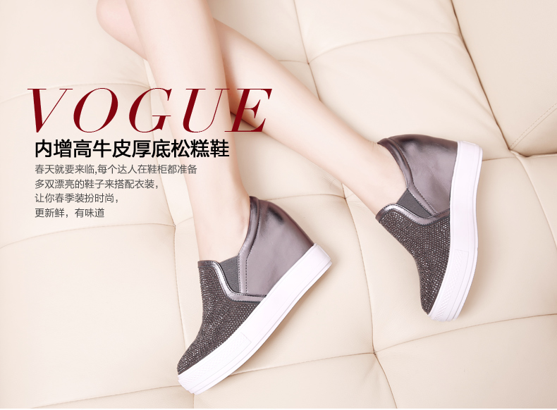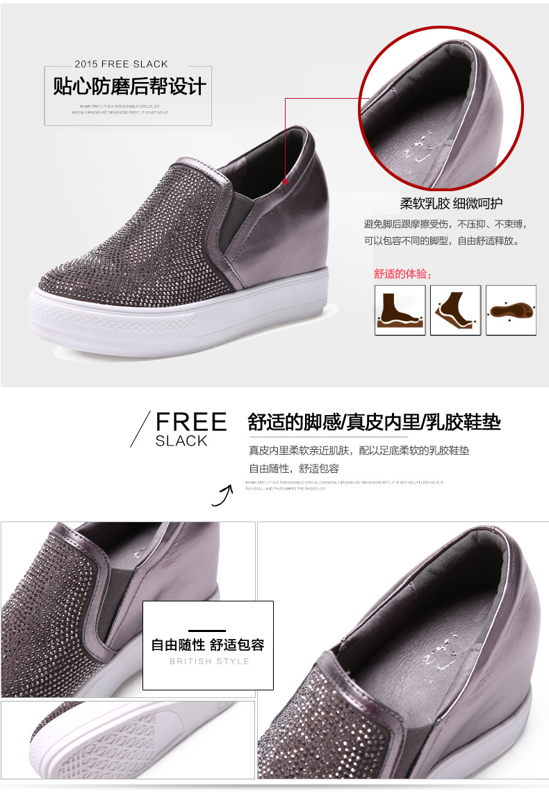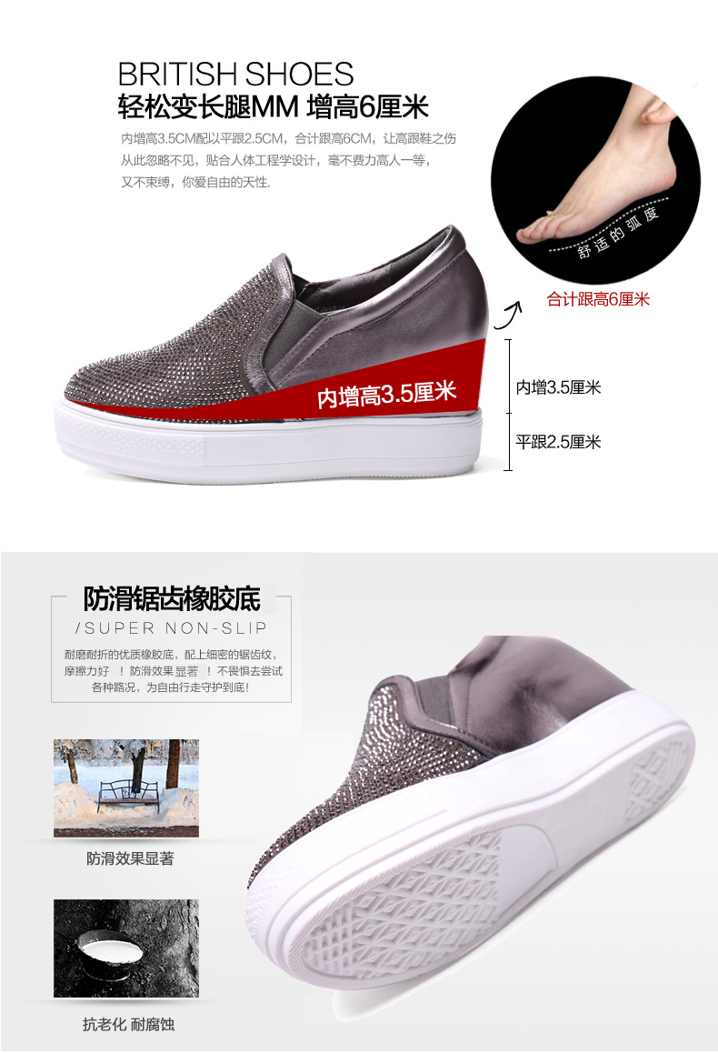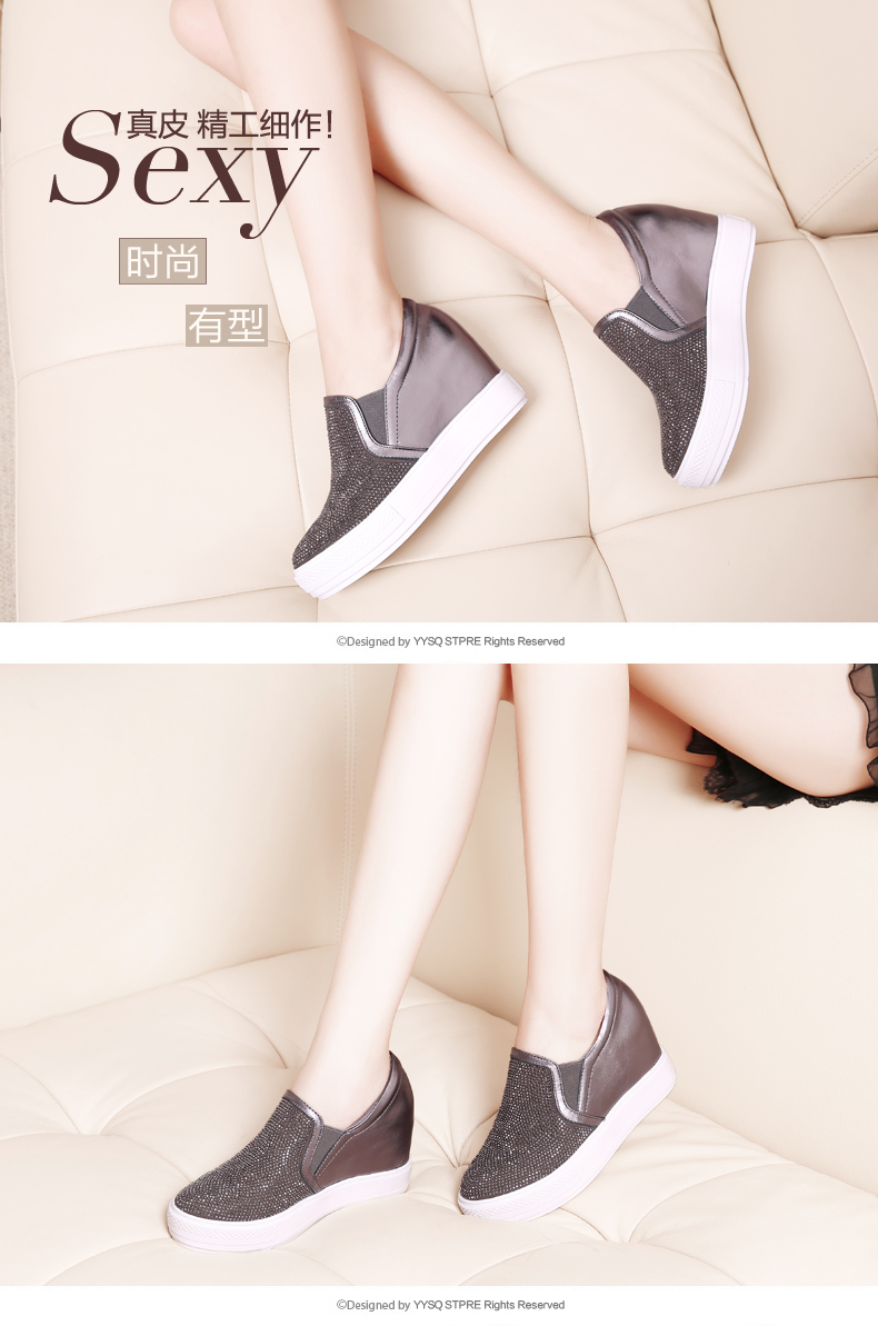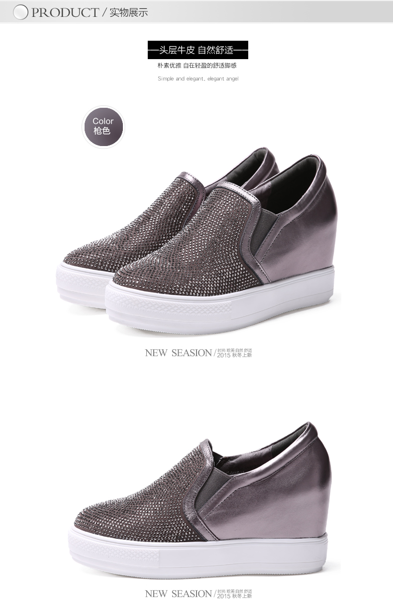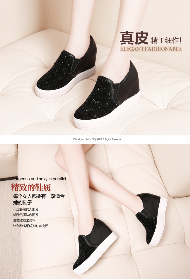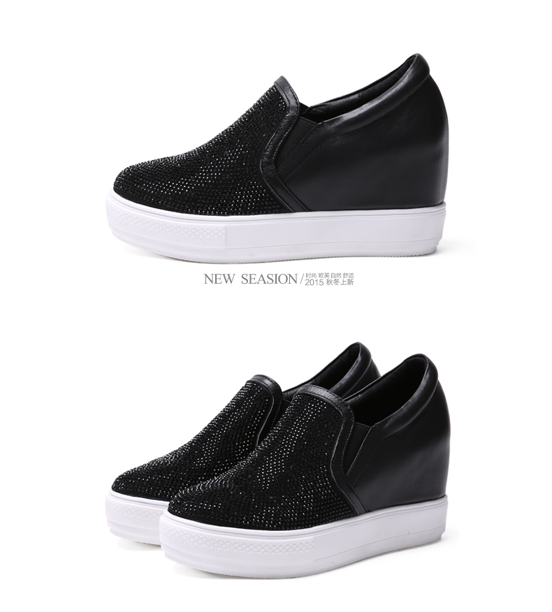 天貓購物商城 內增高真皮樂福鞋 2015女鞋秋季新款厚底平底休閑水鑽深口單鞋女 - 521603475681 購物網 買東西推薦