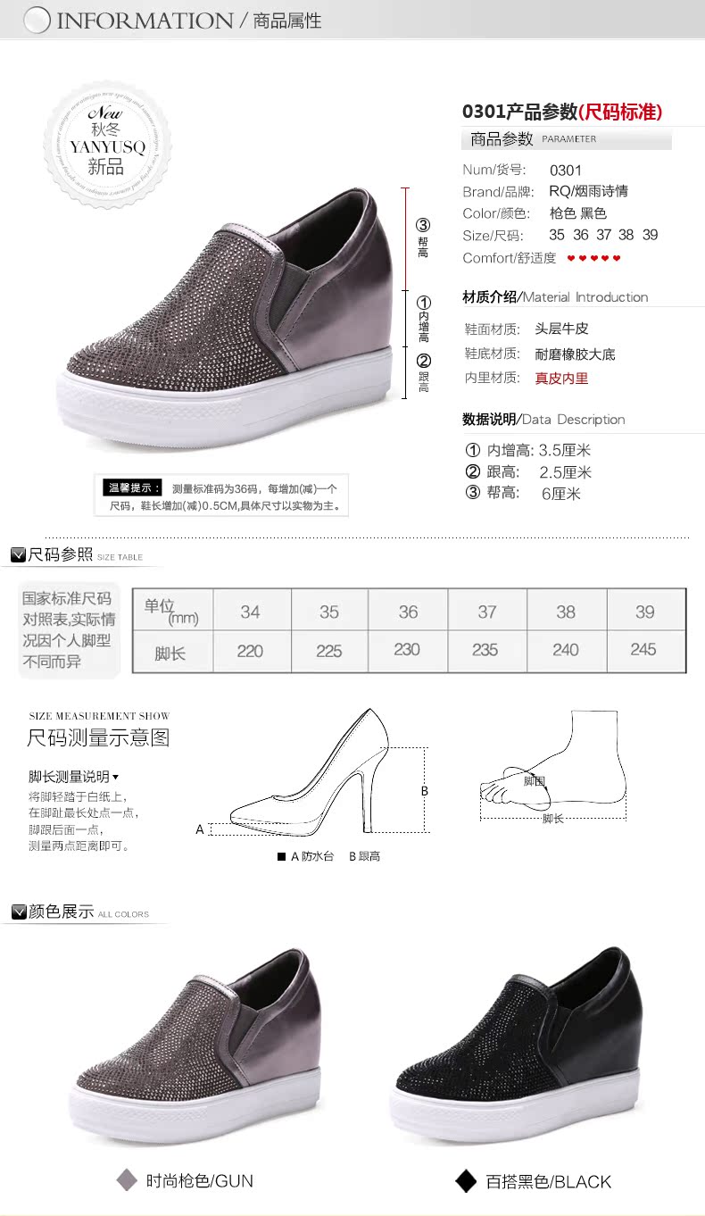 發現網購價格最便宜,內增高真皮樂福鞋 2015女鞋秋季新款厚底平底休閑水鑽深口單鞋女 - 521603475681還曾在 天貓購物商城 類造成搶購熱潮,